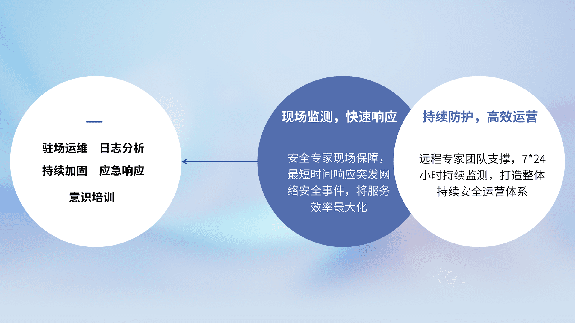7X24小时持续监测安全事件,保持安全策略有效性,降低资产脆弱性风险,,,,精准拦截黑客攻击,,,减少被黑客利用的机会,,,第一时间遏制,,,降低损失。。